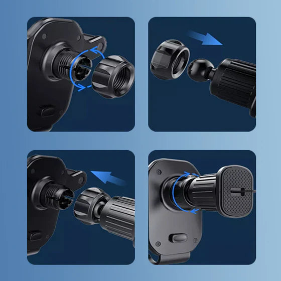 • FUNCTIE VOOR ÉÉN HAND: Schuif je telefoon in de sluiting, die automatisch vergrendelt en op zijn plaats blijft. Met één hand op te pakken en los te laten, rijden zonder afgeleid te worden.