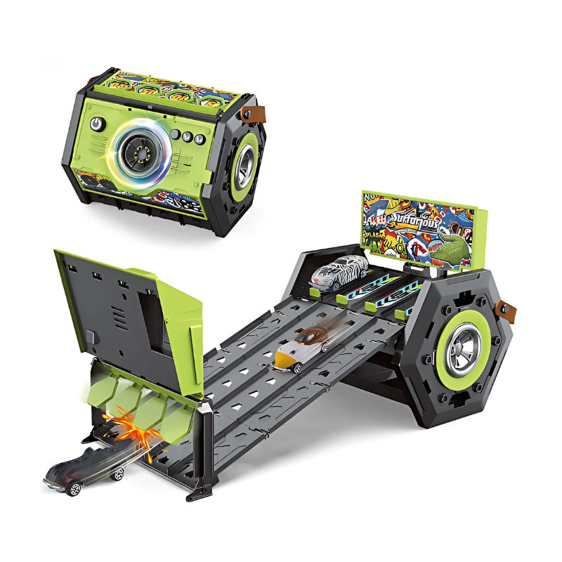 Discover the excitement of real racing with RaceGo, the ultimate portable track set with lights and music that transforms playtime into an adrenaline-pumping adventure, inspiring your child to dream big and race towards endless fun and development!