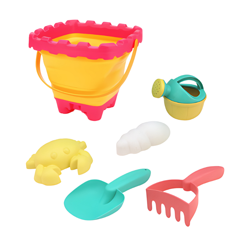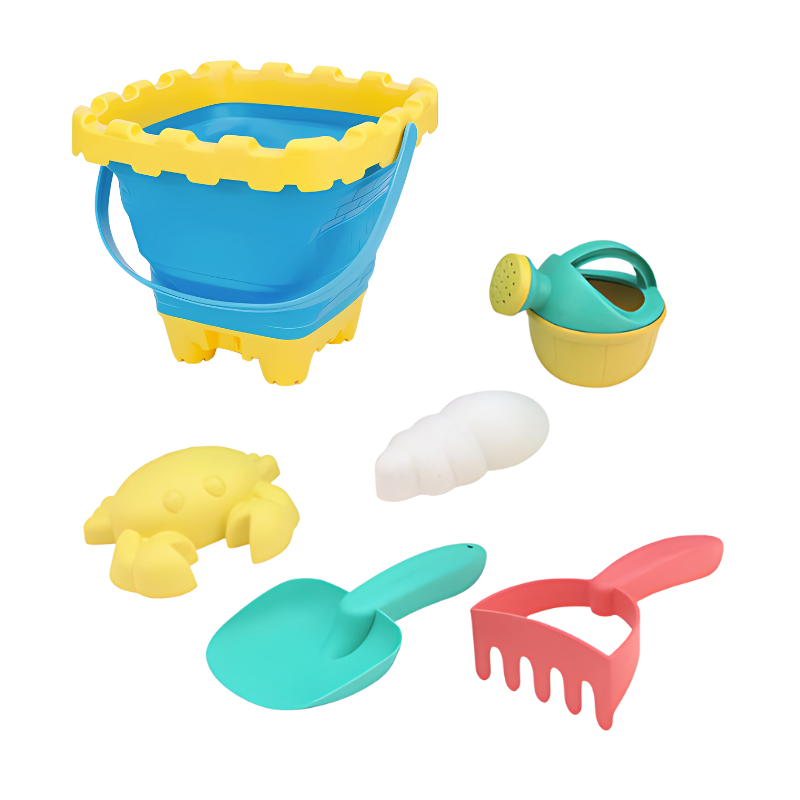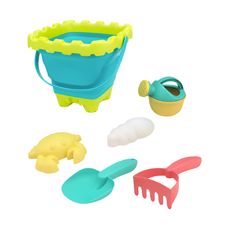 - Set Includes: 1x Bucket 1x Rake, 1x Shovel, 2x Molds