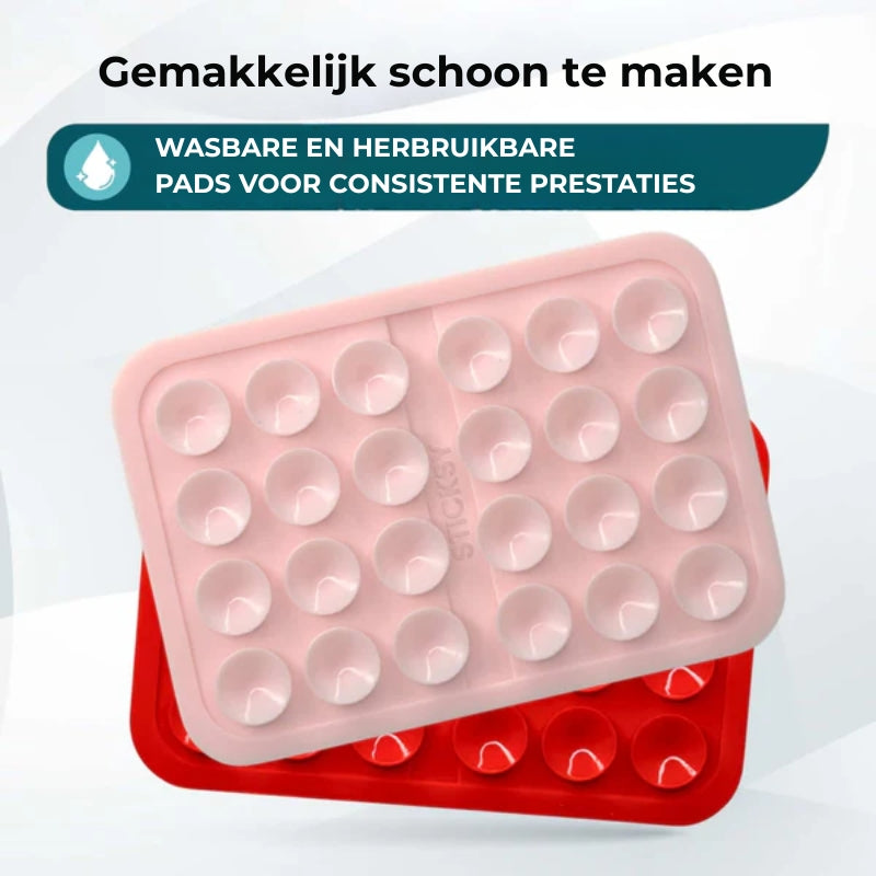 Maak kennis met Sticksy - de virale zuignap waarmee je je telefoon op spiegels, ramen, tegels, muren en meer kunt plakken. Of je nu workouts filmt, je 's ochtends klaarmaakt, kookt of makkelijke bevestiging wilt, Sticksy houdt je telefoon precies waar je hem nodig hebt - zonder lijm, magneten of rommel.